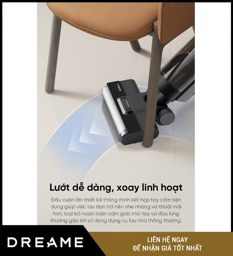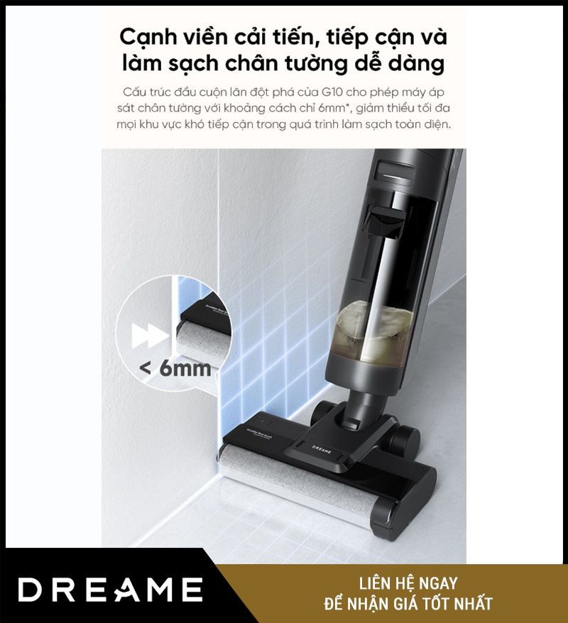 Nhờ cải tiến này, Dreame G10 mang lại hiệu quả làm sạch toàn diện, ngay cả những khu vực khó tiếp cận mà chổi lau tay hay máy hút bụi khác thường bỏ sót.