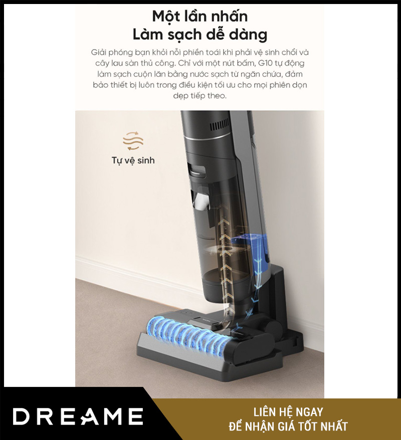 Với Dreame G10, vấn đề này được giải quyết nhờ tính năng vệ sinh cuộn lăn tự động: