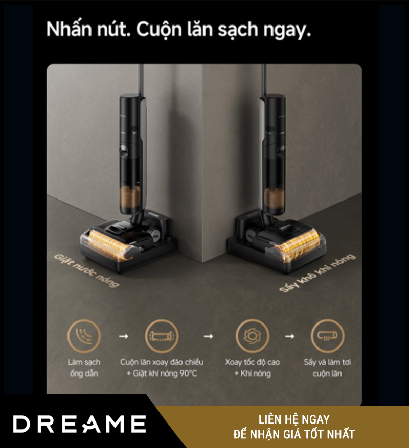 Khác với các mẫu hút lau thông thường, Dreame H12 FlexReach sở hữu hệ thống cuộn lăn kép (dual rollers) hoạt động đồng thời giúp: