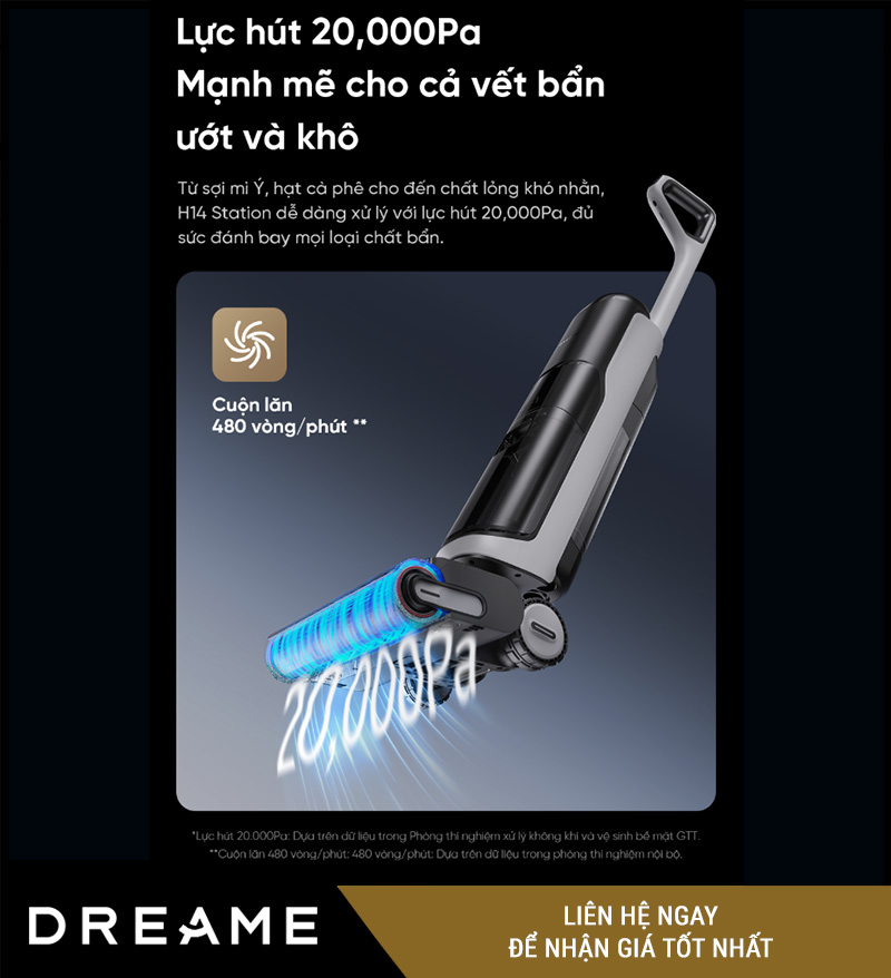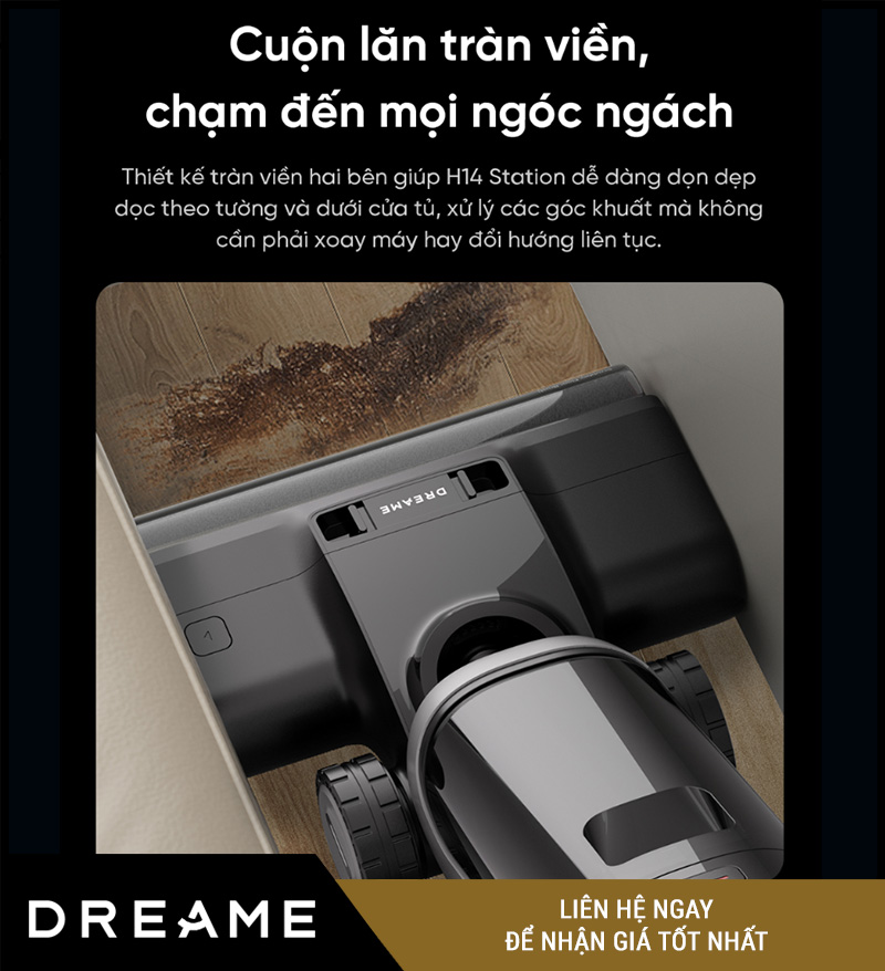 Dreame H14 Station được thiết kế với cuộn lăn tràn viền và hệ thống cảm biến thông minh, giúp máy có thể: