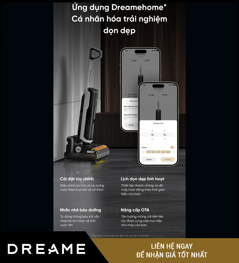 Dreame H14 Station hỗ trợ kết nối Wi-Fi với ứng dụng Dreamehome, cho phép bạn: