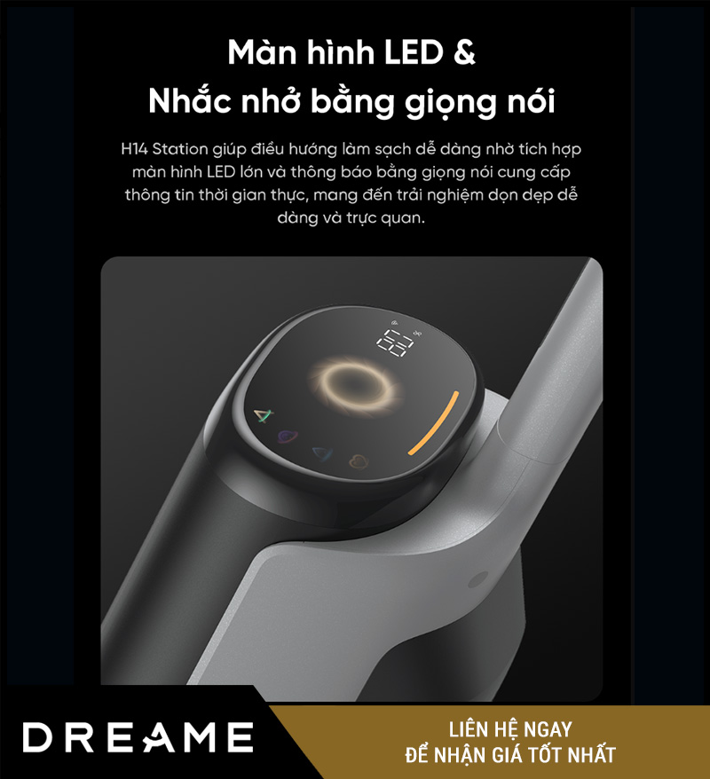 Dreame H14 Station tích hợp màn hình LED thông minh, kết hợp giọng nói nhắc nhở theo thời gian thực, giúp người dùng: