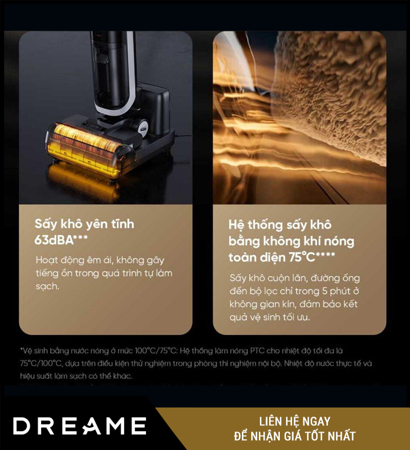 Sau khi giặt bằng nước nóng 100°C, Dreame H14 Station tiếp tục tiến hành sấy khô cuộn lăn trong khoang kín bằng khí nóng ở nhiệt độ 75°C, với hai chế độ: