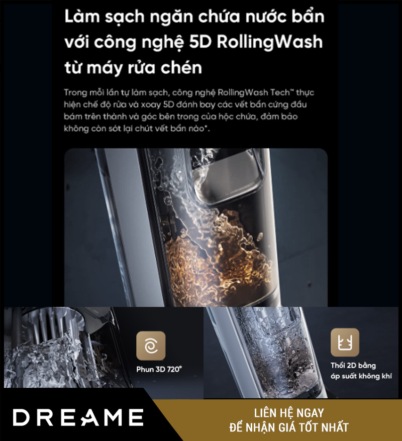 Làm sạch ngăn chứa nước bẩn bằng công nghệ 5D RollingWash – Chuẩn như máy rửa chén