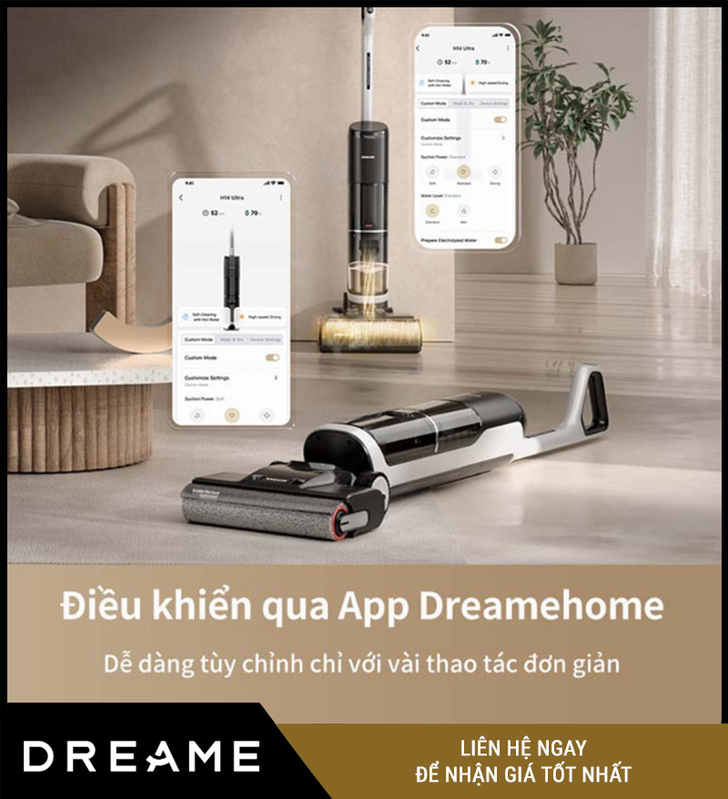 Dreame H14 Ultra hỗ trợ kết nối với ứng dụng Dreamehome, giúp người dùng quản lý – cá nhân hóa – giám sát toàn bộ quá trình vệ sinh nhà cửa chỉ với vài thao tác trên điện thoại.