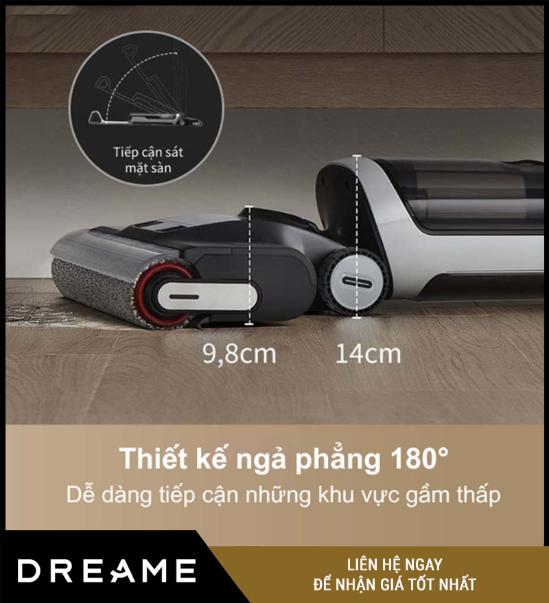 Thiết kế ngả phẳng 180° – Dọn dẹp dễ dàng dưới gầm thấp