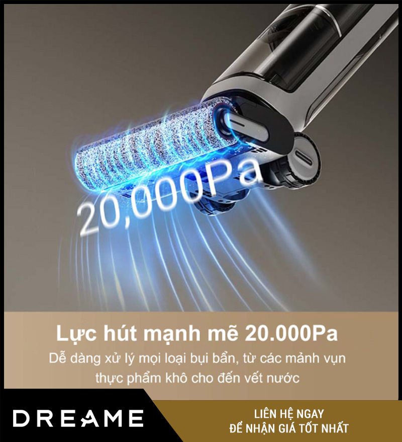 Lực hút mạnh mẽ 20.000Pa – Làm sạch sâu vượt trội