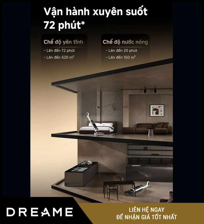 Nhờ được trang bị động cơ không chổi than công suất cao, cùng hệ thống tản nhiệt và quản lý pin thông minh, Dreame H15 Pro Heat có thể hoạt động liên tục trên diện tích rộng mà không giảm hiệu suất.