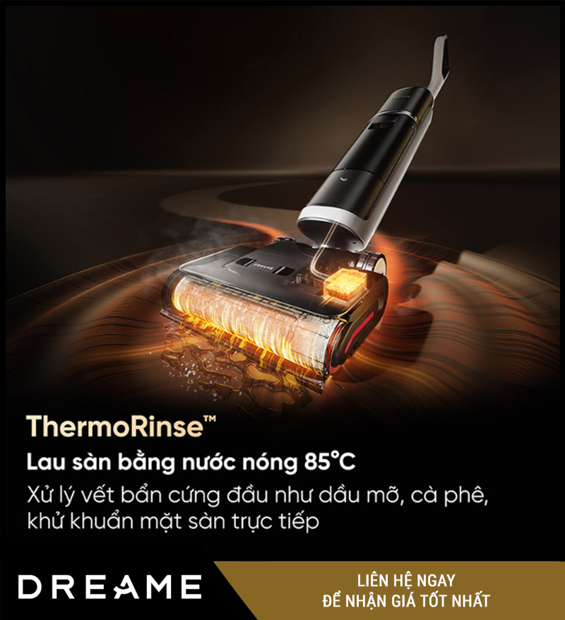 Một trong những điểm đột phá của Dreame H15 Pro Heat chính là khả năng làm sạch bằng nước nóng 85°C – điều mà rất ít dòng máy hút bụi lau sàn hiện nay có thể làm được.