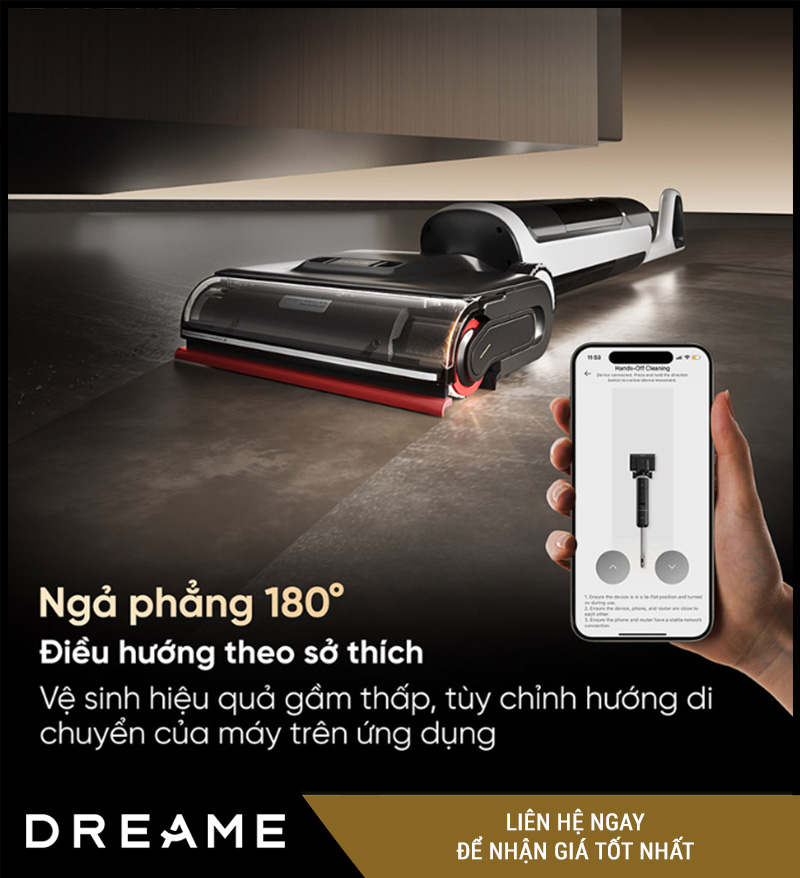 Dreame H15 Pro Heat sở hữu khả năng ngả phẳng 180°, cho phép: