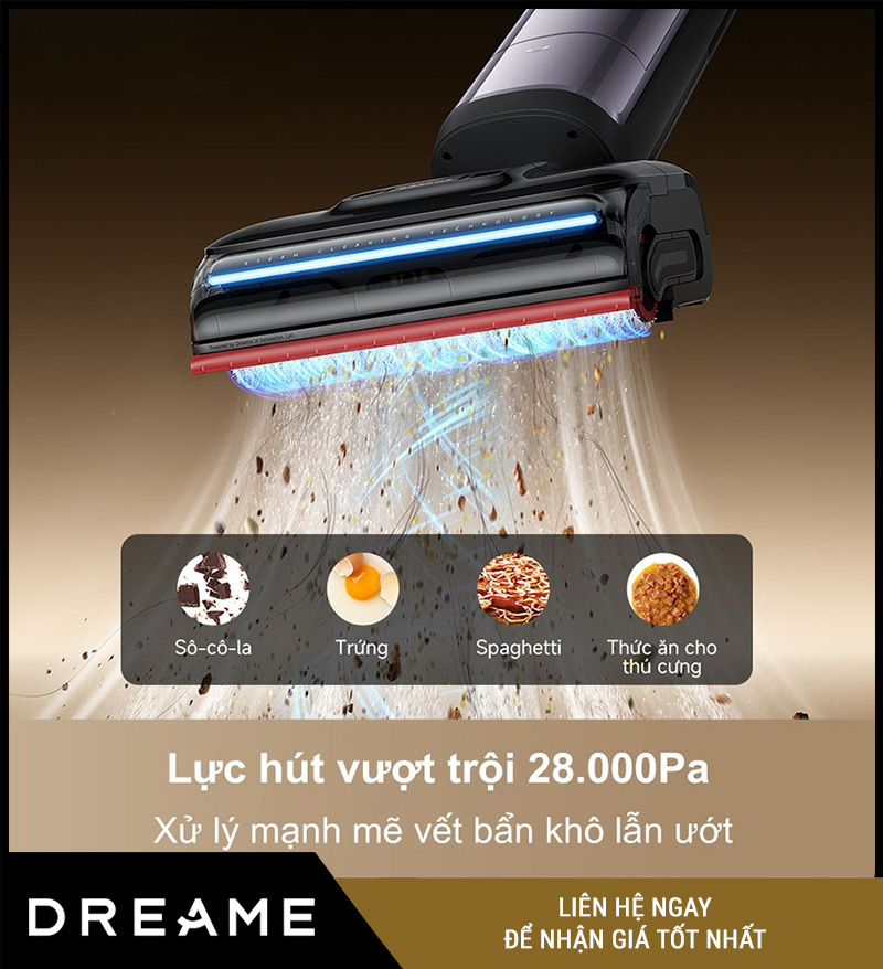 Lực hút siêu mạnh 28.000Pa, xử lý vết bẩn khô và ướt dễ dàng