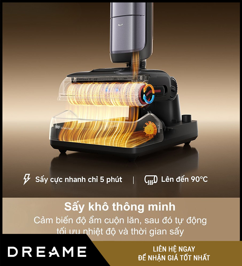 Sau khi tự làm sạch, máy có chế độ sấy khô 90°C để làm khô cuộn lăn và khoang liên quan, giảm tình trạng ẩm mốc.