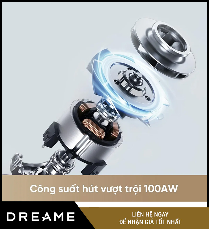 Động cơ không chổi than cùng sức hút mạnh mẽ 100AW