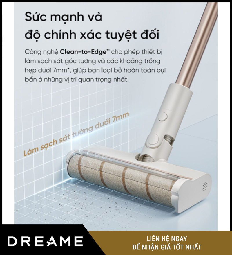 Với công nghệ Clean-to-Edge™, Dreame V11 Pro có khả năng tiếp cận sát các mép tường, chân bàn ghế hay những khu vực thường khó vệ sinh bằng máy hút bụi thông thường. Nhờ đó, bạn không còn phải lo lắng về bụi bẩn bị bỏ sót ở các góc khuất trong nhà, mang đến không gian sạch sẽ toàn diện hơn.