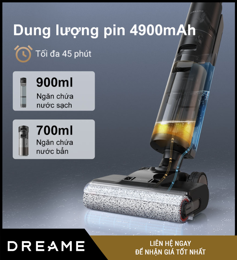Dung lượng pin & bình nước lớn – lau dọn diện tích rộng