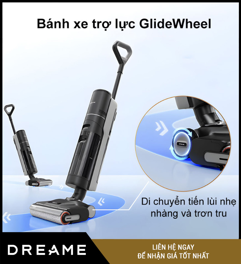 Nhờ hệ thống GlideWheel (bánh xe trợ lực), H13 Pro có thể tự “kéo” nhẹ về phía trước, giúp việc đẩy máy không tốn nhiều sức.