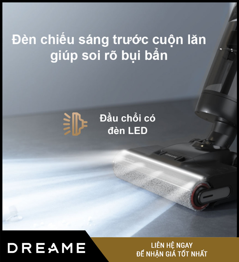 Đèn LED phía trước giúp phát hiện bụi bẩn trong góc tối như gầm giường, gầm tủ.