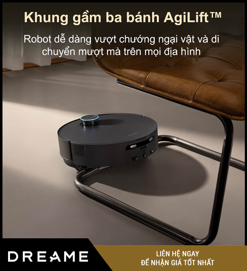 Ngoài ra, AgiLift™ kết hợp cảm biến độ cao giúp robot tự cân bằng theo địa hình, đảm bảo di chuyển mượt mà – chính xác – êm ái ngay cả ở các khu vực phức tạp như cầu thang, thềm nhà, góc tường.