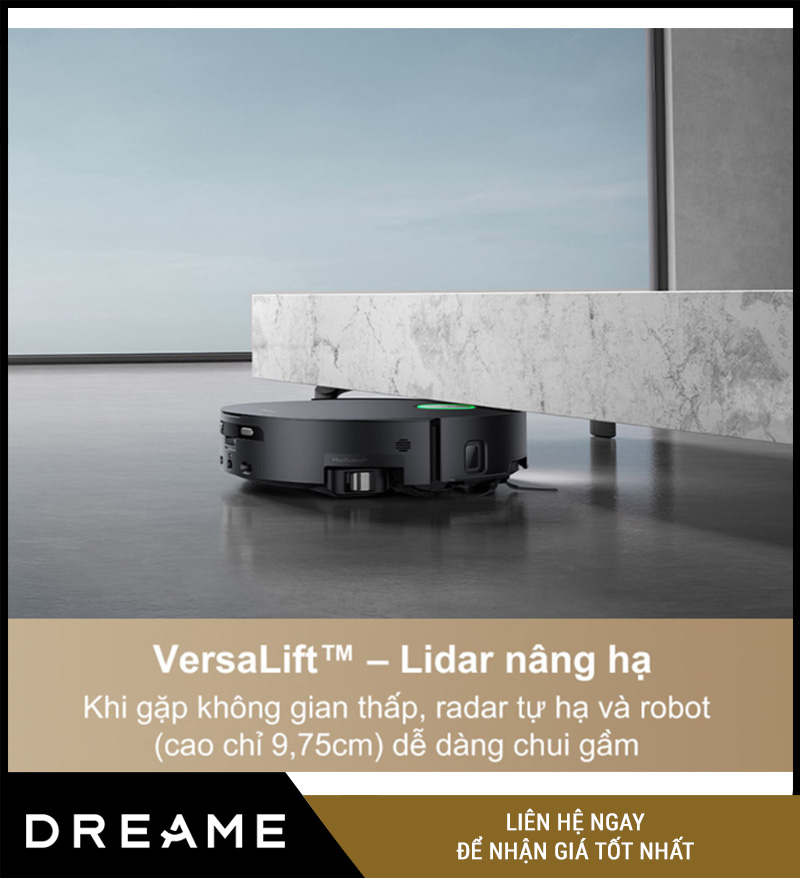 Tự hạ thấp chiều cao để dễ dàng luồn vào gầm giường, gầm tủ, gầm sofa chỉ 9,8cm.
