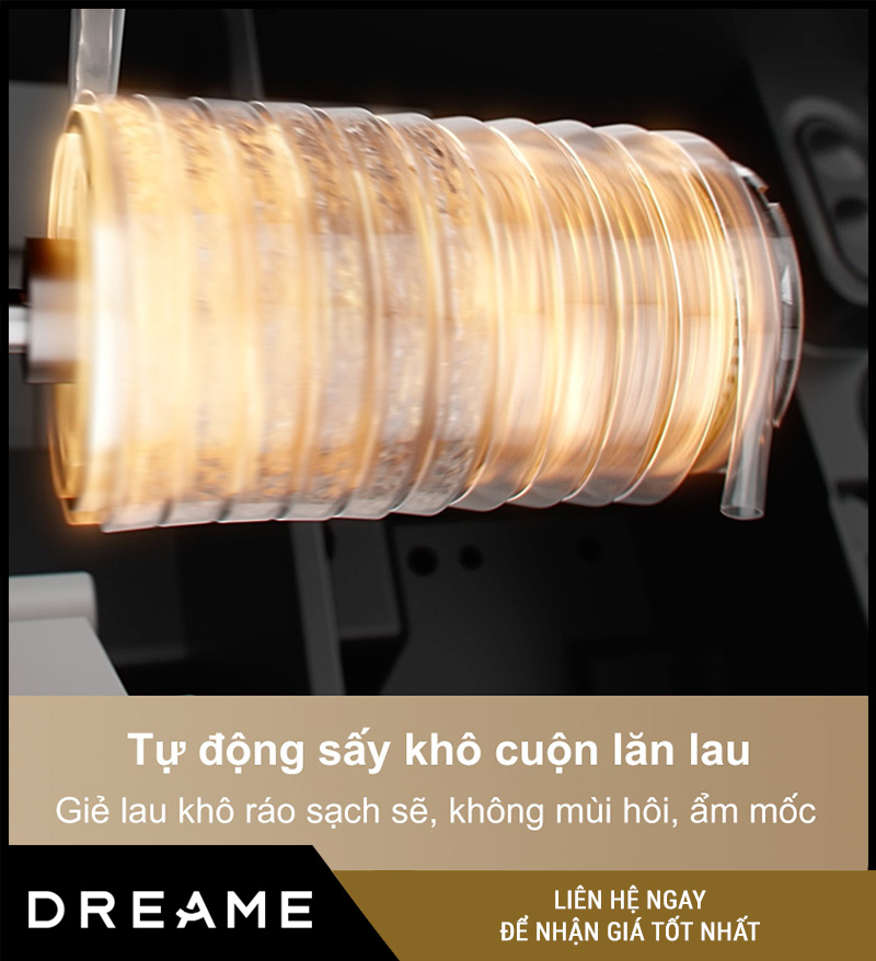 Sau khi giặt giẻ, Dreame Aqua 10 Pro Track sẽ tự động sấy khô bằng khí nóng – một bước quan trọng giúp ngăn chặn vi khuẩn, mùi ẩm mốc phát sinh trong giẻ lau.