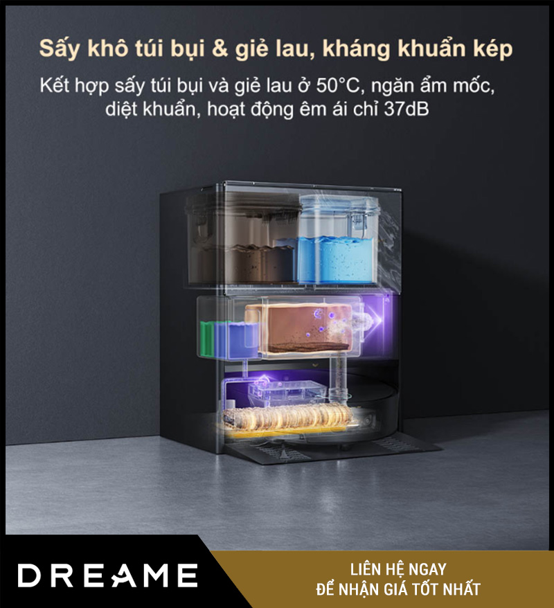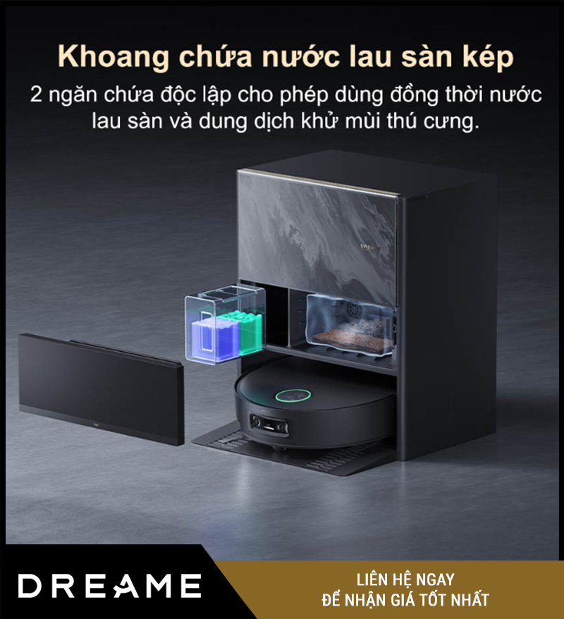 | Dung tích hộp nước (trên dock sạc) | 4.5L (nước sạch) / 4.0L (nước bẩn) |