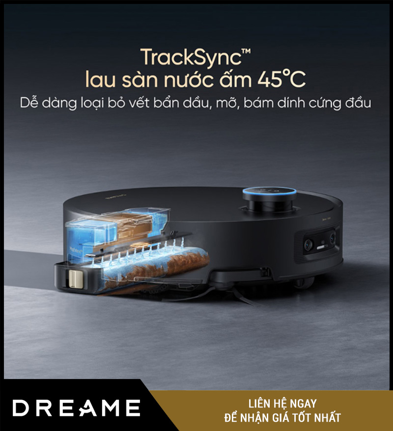 Một trong những điểm nâng cấp vượt trội trên Dreame Aqua 10 Pro Track chính là công nghệ TrackSync™ – lau sàn bằng nước ấm 45°C. Không chỉ đơn thuần lau bằng nước lạnh như các dòng robot phổ thông, TrackSync™ giúp: