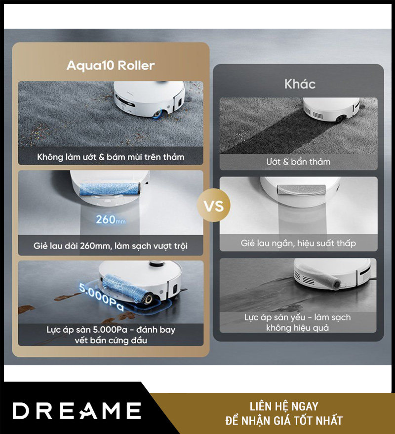 Nếu bạn đang tìm kiếm robot tự động hoàn toàn, có khả năng thay thế dọn dẹp thủ công hàng ngày, thì Dreame Aqua10 Roller là lựa chọn cực kỳ đáng đầu tư trong phân khúc trên 20 triệu đồng.