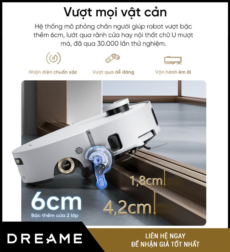 Vượt chướng ngại vật cao đến 2.2cm: dễ dàng leo thảm dày, gờ cửa, sàn giật cấp