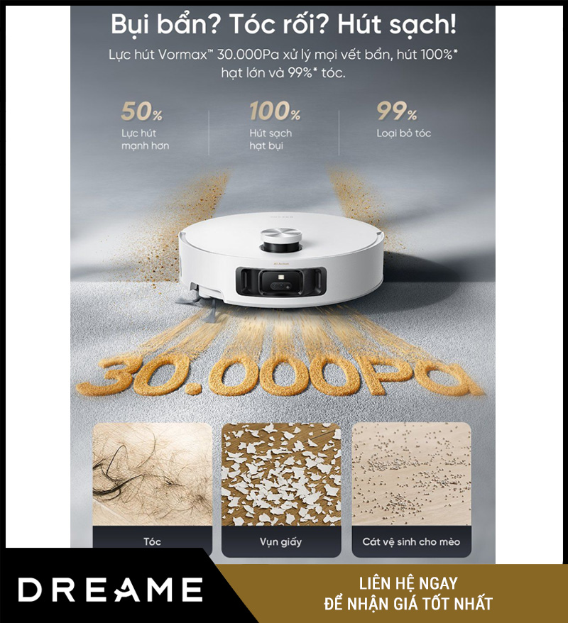Lực hút Vormax™ mạnh mẽ đến 30.000Pa