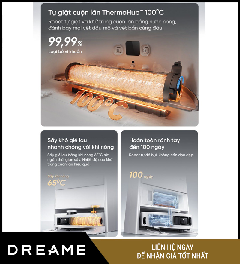 Công nghệ ThermoHub™ – Tự giặt con lăn bằng nước nóng 100℃, sạch khuẩn – không mùi