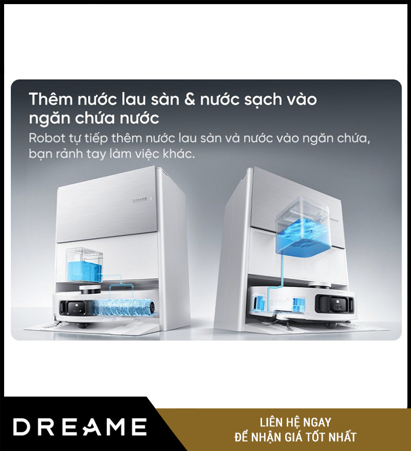 Tự động đổ rác, bổ sung nước, sấy giẻ