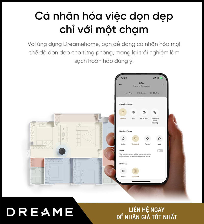 Nhờ tính năng cá nhân hóa này, Dreame D20 giúp bạn dễ dàng kiểm soát và tùy chỉnh việc dọn dẹp, phù hợp cho từng nhu cầu sử dụng và thói quen sinh hoạt hàng ngày.