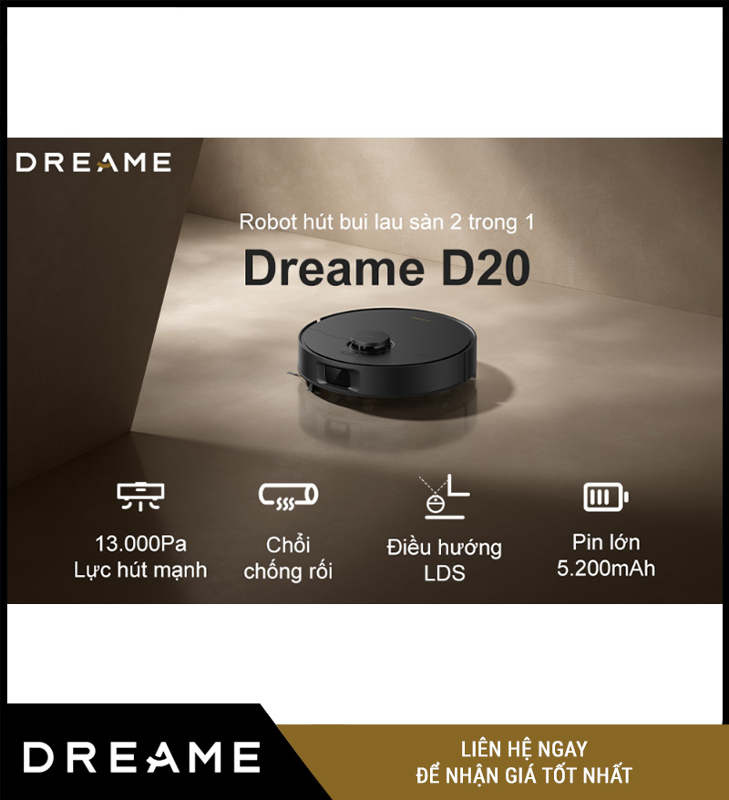 Với khả năng điều khiển giọng nói và ứng dụng tiện lợi, Dreame D20 Robot hút bụi lau nhà mang đến trải nghiệm “nhà thông minh thực thụ”, giúp việc dọn dẹp trở nên đơn giản hơn bao giờ hết.