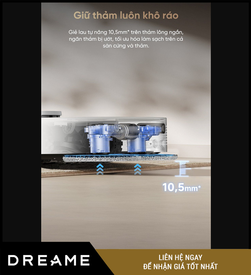 Tự động nâng giẻ lau lên, tránh làm ướt thảm (lên tới 10.5mm)