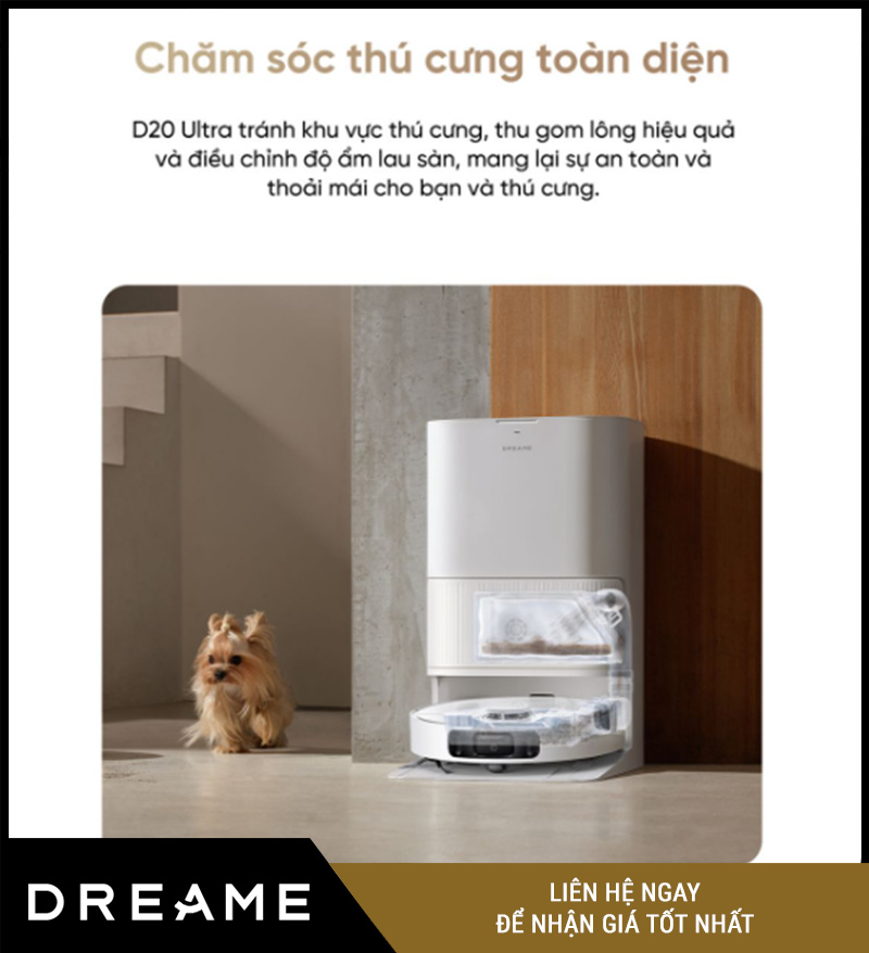 Đây là lý do Dreame D20 Ultra đặc biệt được ưa chuộng bởi các gia đình có mèo, chó, hoặc thú cưng nhỏ.