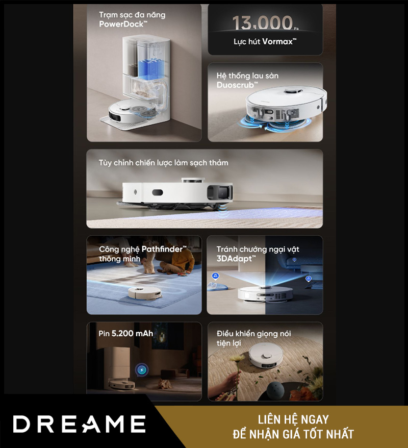 Đây là dòng robot hút bụi lau nhà cao cấp mới nhất của Dreame, tích hợp hàng loạt công nghệ tiên tiến như: