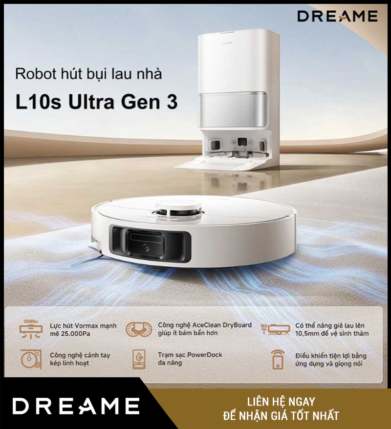 Đây là lý do Dreame L10s Ultra Gen 3 được đánh giá là robot hút lau tự động toàn phần hiếm hoi, lý tưởng cho người bận rộn hoặc gia đình cần giải pháp “dọn nhà không chạm tay”.