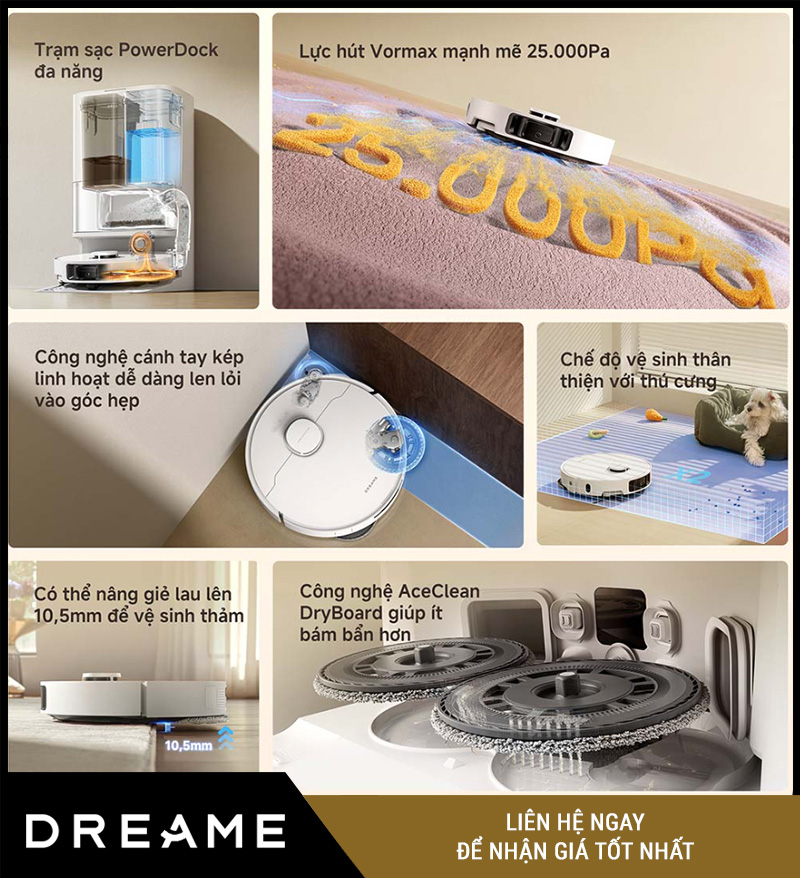Đây là giải pháp lý tưởng cho các gia đình bận rộn, có trẻ nhỏ, thú cưng hoặc nhiều tầng, cần một robot dọn nhà thông minh – sạch sâu – tiết kiệm thời gian tối đa.