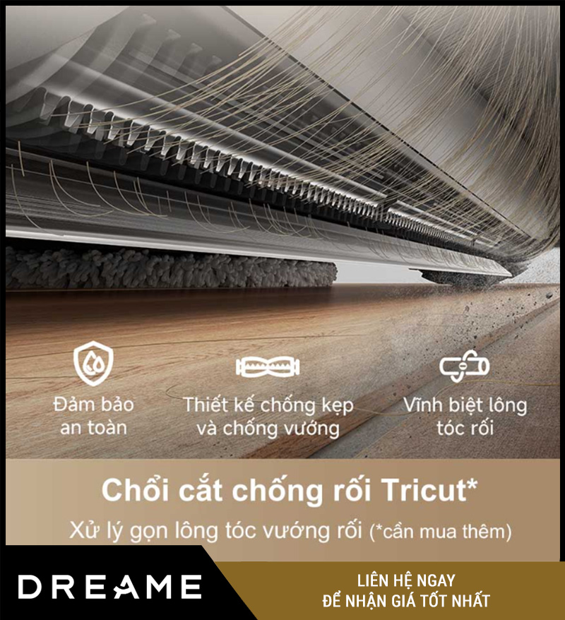 Chổi cạnh được thiết kế mở rộng, có thể quét sâu vào chân tường – mép giường – góc tủ, gom hết tóc rối, bụi mịn bám sát mép sàn mà robot thường bỏ sót.