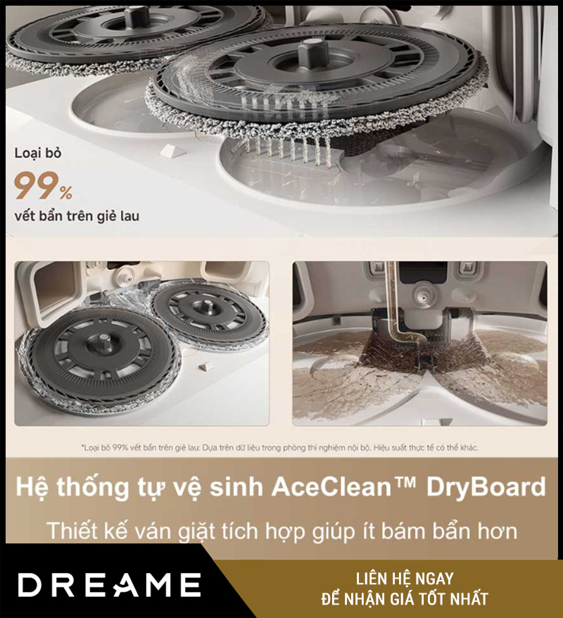 Đa phần các robot lau nhà hiện nay thường để nước chảy đọng lại ở trạm sạc, gây ẩm mốc, mùi hôi hoặc ố vàng trên sàn. Dreame L10s Ultra Gen 3 trang bị công nghệ AceClean DryBoard – một hệ thống sấy khô đế sạc tự động, giúp giải quyết triệt để vấn đề này.