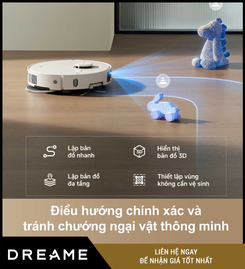 Đây là công nghệ mà các robot hút lau giá rẻ không thể có được, giúp Dreame Gen 3 thích nghi tốt với mọi không gian sống, kể cả nhà nhiều vật cản, nuôi thú cưng hoặc có con nhỏ.