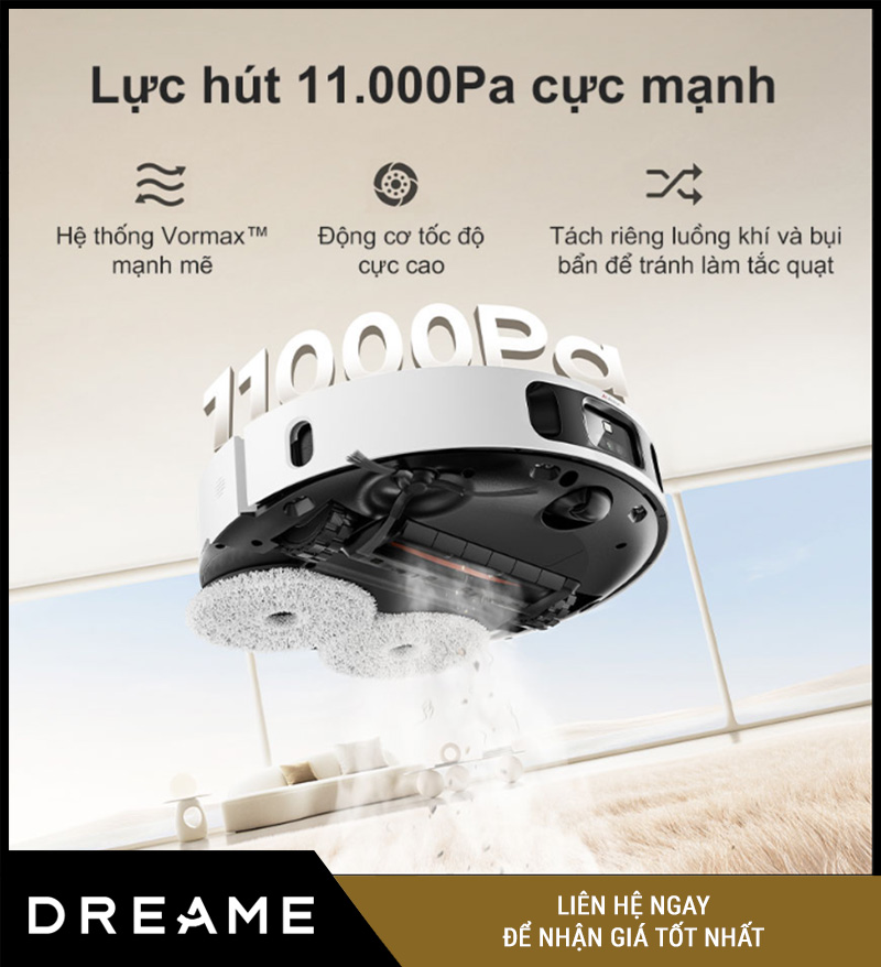 Lực hút Vormax™ 11.000Pa – sạch sâu, không bỏ sót rác lớn nhỏ