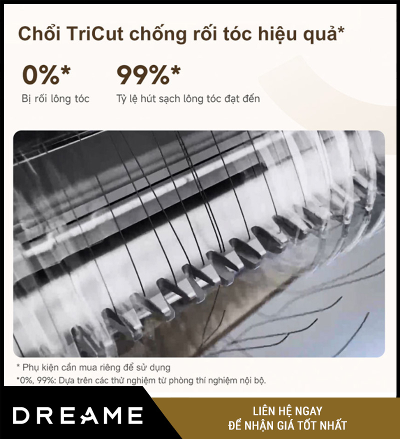 Trang bị chổi chính TriCut™ – Giải quyết triệt để tóc rối & bụi sợi