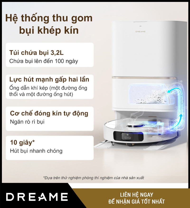 Tự động hút bụi vào túi rác 3.2L – chỉ cần thay 1–2 tháng/lần