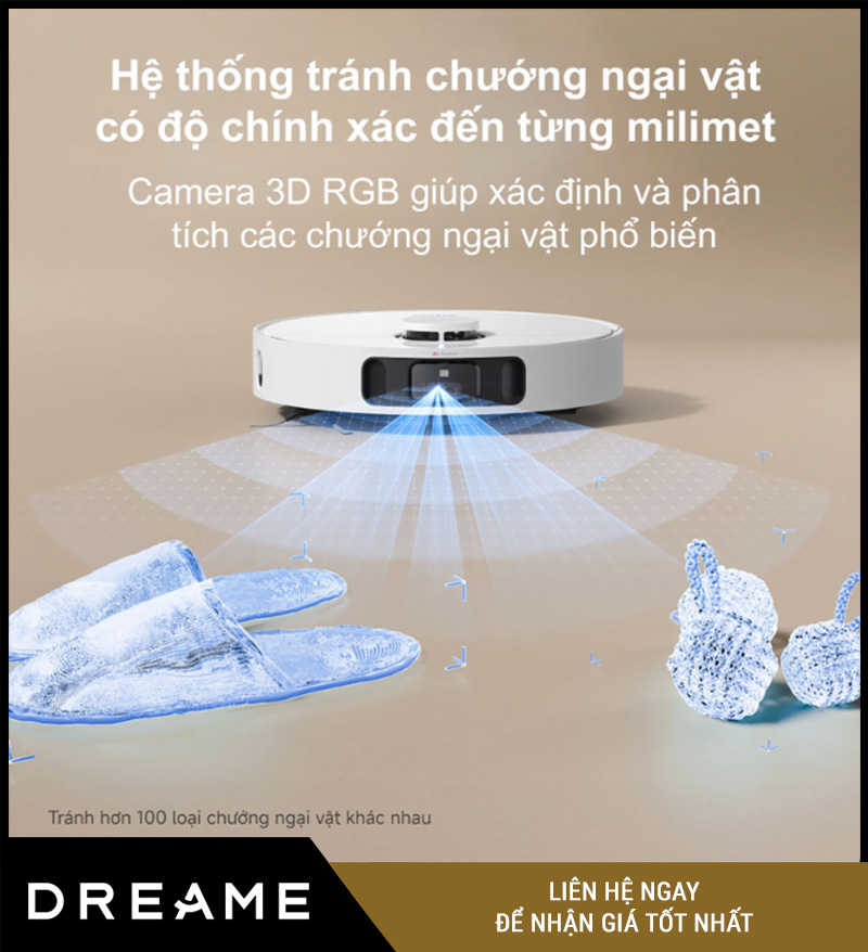 Kết hợp cảm biến hồng ngoại và chiều sâu: phát hiện vật thể như dây điện, dép, bát thức ăn, đồ chơi nhỏ