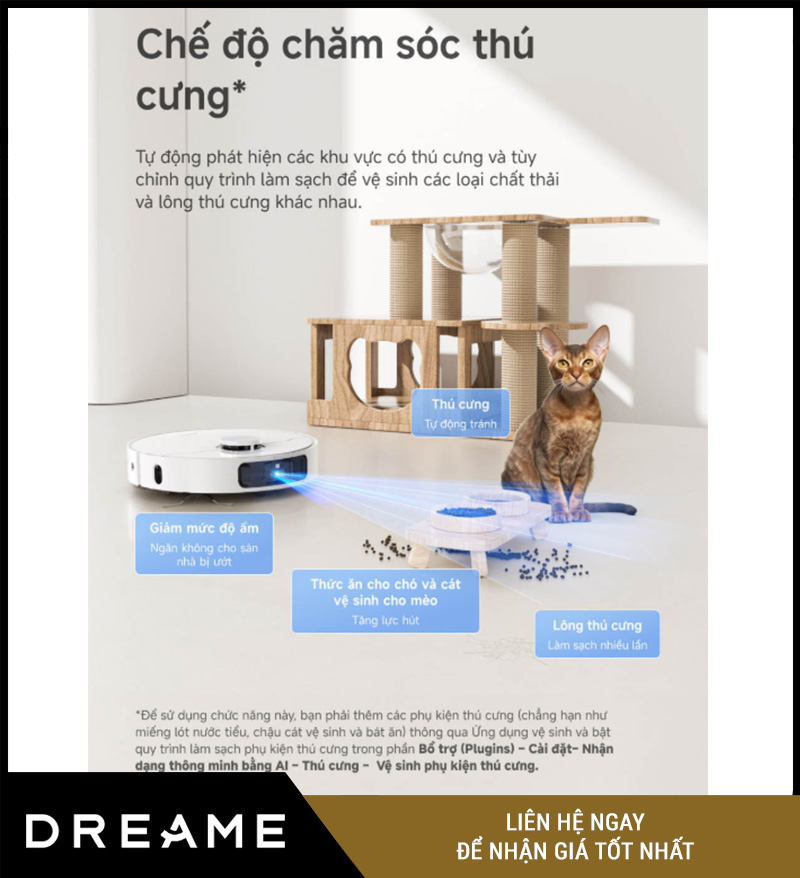 Dreame L30s Ultra tích hợp chế độ Pet Mode – dành riêng cho gia đình có chó, mèo hoặc thú cưng sống trong nhà.