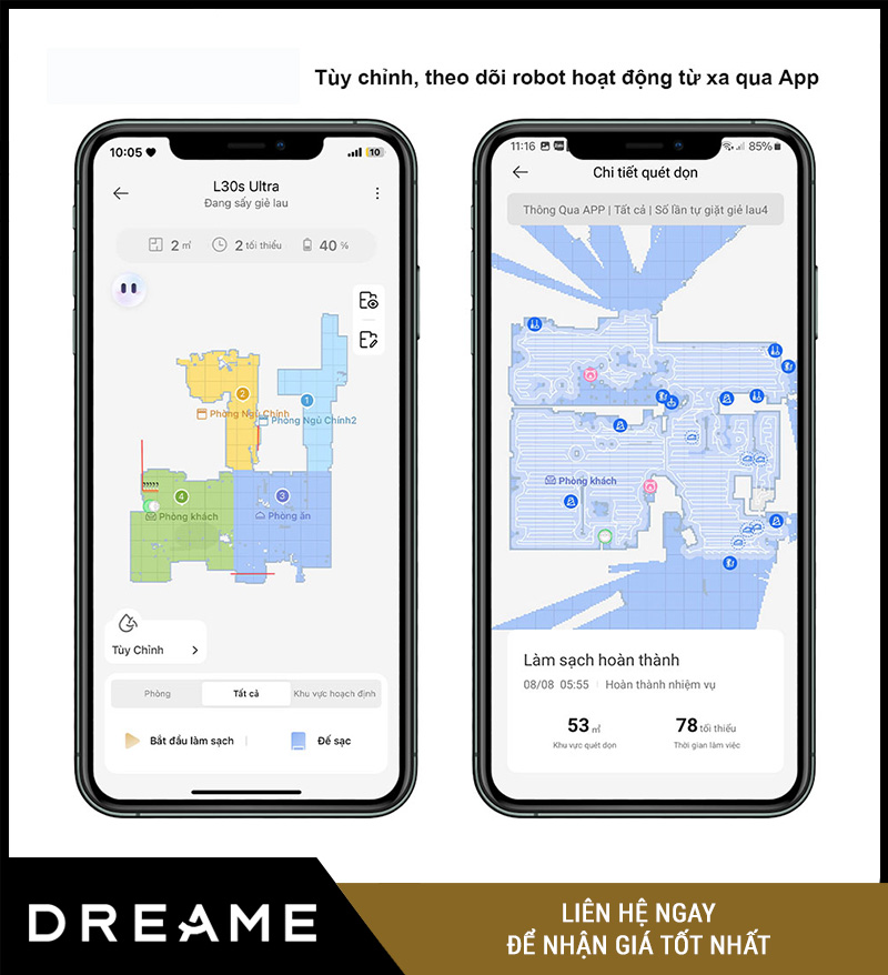 Tất cả được thực hiện đơn giản qua ứng dụng Dreame Home – có hỗ trợ tiếng Việt.