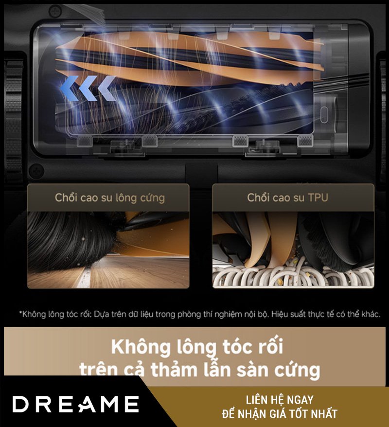 Không còn nỗi lo tóc rối, kẹt chổi, phải gỡ rối bằng tay! Dreame L40s Ultra tích hợp công nghệ HyperStream™ chổi kép chống rối, giúp: