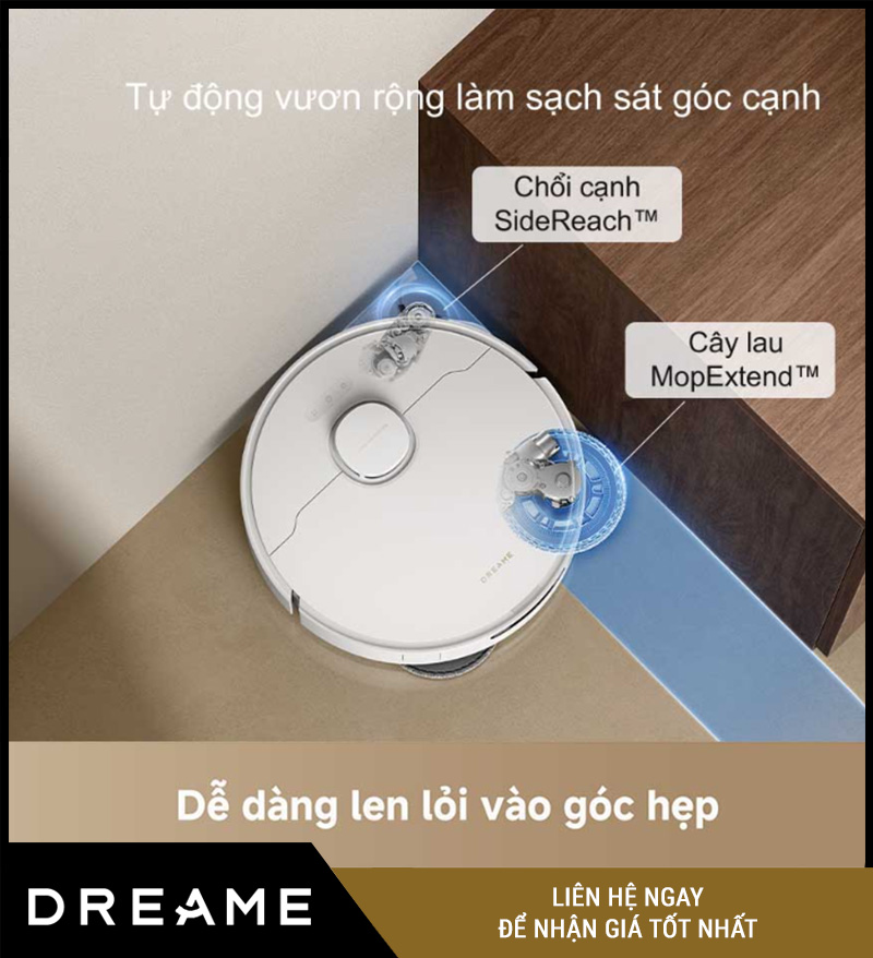 Một điểm mạnh nổi bật của Dreame L50 Ultra CE chính là khả năng tiếp cận và làm sạch triệt để ở các mép tường, chân nội thất và góc hẹp, nhờ hai công nghệ thông minh: