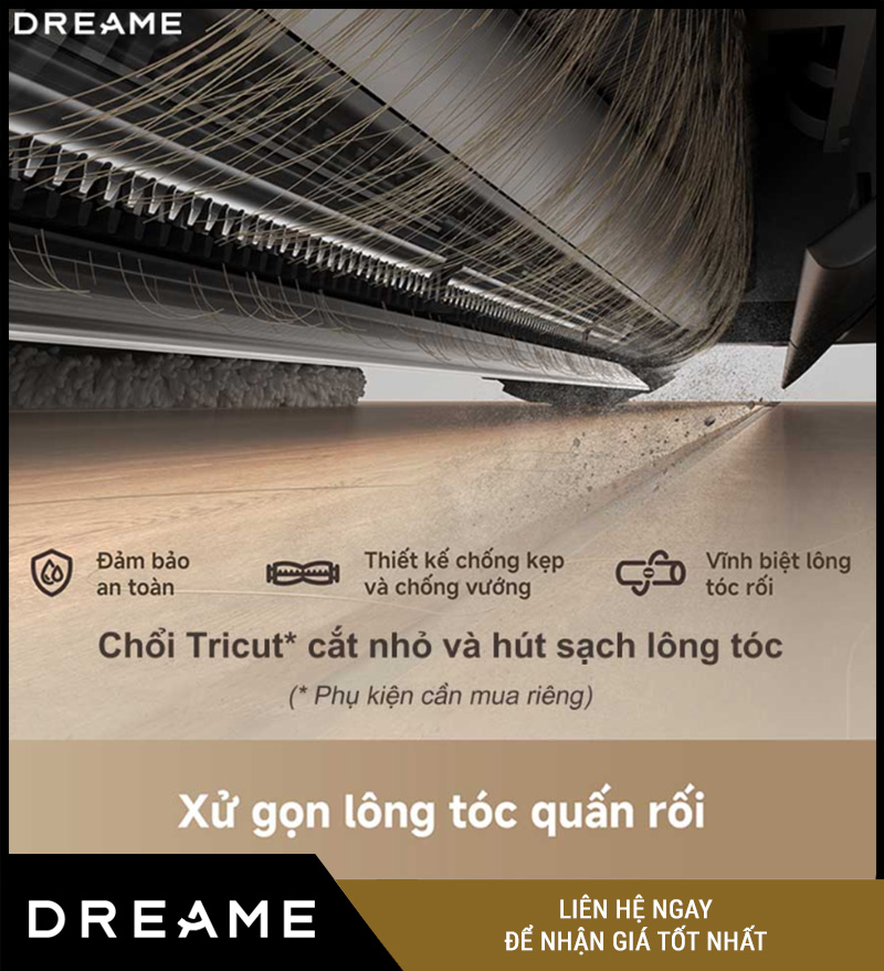 Với Dreame L50 Ultra CE, bạn không còn lo lắng điều đó nhờ hệ thống chổi chính TriCut™, thiết kế 3 cạnh cắt xen kẽ giúp:
